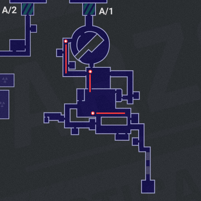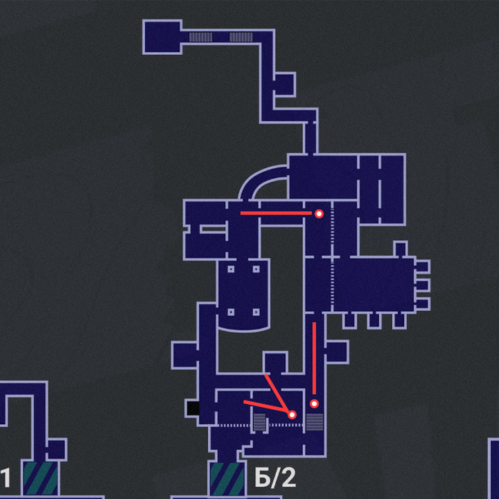3. Любая команда добирается до центрального сектора комплекса, находит в вентиляционных шахтах 1 и 2 ключей (Factory Admin Key) и открывает один из коридоров Д1 или Д2