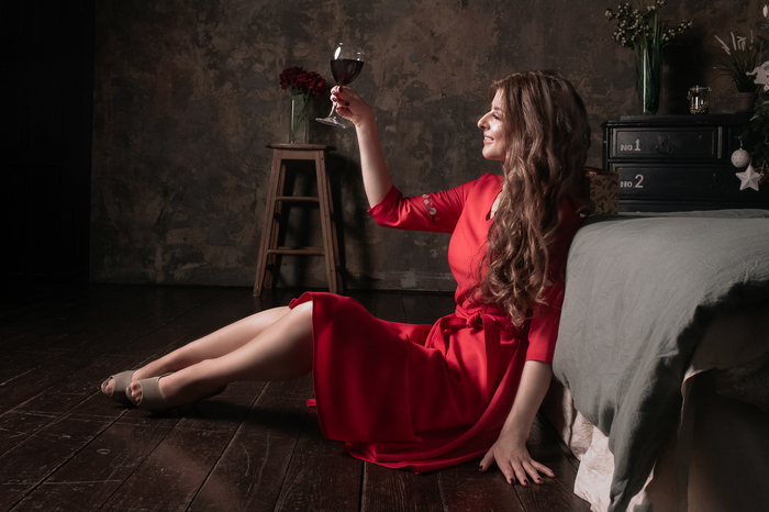 А это моя довольная подруга. Сказала, что ей понравилась фотосессия. В особенности потому, что нужно было пить вино, а после улыбаться 😃