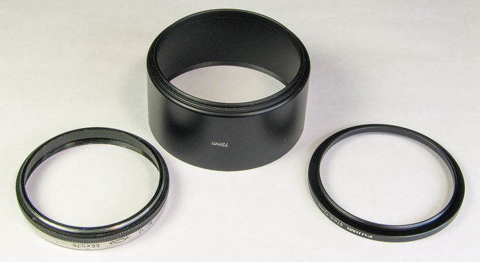 Так как просветление старое, и его стоит беречь от частый протирок, то прикупил защитный фильтр, и поставил его между блендой, и переходником. А так же для переноски использую крышку-быстросъём на 72мм.Получилось хорошо.