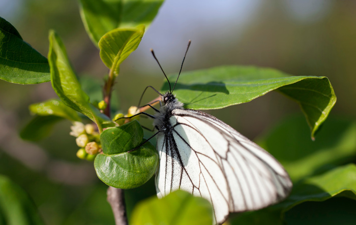 Продолжается лет боярышниц, в этот раз они атаковали крушину. И там еще порхает какой-то жук-мягкотелка, но не знай, кто оно.