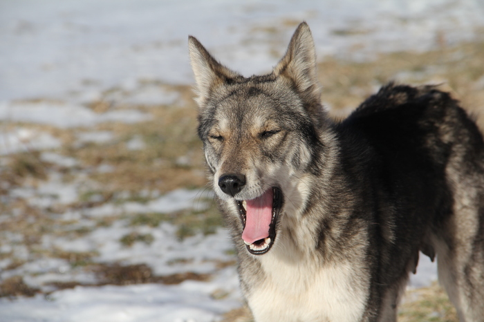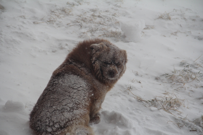 Добрались до Фунтика. Шерсть прекрасно позволяет переносить холода.