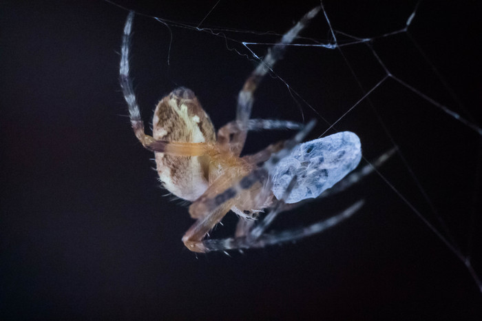 Фото снято на Canon 5D Mark3, объектив был Гелиос 40 (62-ого года выпуска), с чипом подтверждения фокусировки (на Али-экспрессе купил) и китайские макрокольца (с того же Али). Связка вполне рабочая, но ловить "Неуловимого Джо", когда он тебе нужен, ох как не просто! :) По настройкам, с макрокольцами работать с открытой диафрагмой, конечно можно, но ГРИП будет мизерным. Поэтому тут у нас f 16, ISO 2000 (не очень ярко было, даже, скорее облачно), выдержка минимально, что хоть как-то не давало смаз 1/200 (хотелось бы покороче, но тогда ИСО бы пришлось ещё задрать, а так оно, хоть как-то, под зерно на плёнке смахивает ;) ), ну и фокусное 85мм (Гелиос 40 же). Да, в фото не присутствует то самое боке, ради которого этот объектив покупался, хотелось именно проверить его границы, а не юзать одну заезженную фичу. Обработка и колорирование в camera RAW.