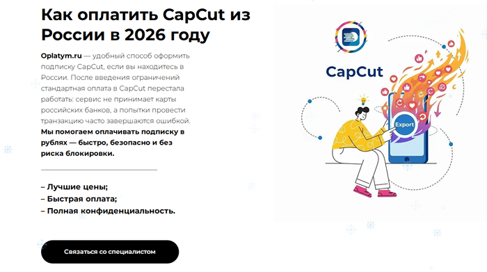 Самый стабильный путь — сервис-посредник Oplatym: платёж проходит один раз, есть поддержка, а capcut купить подписку можно без лишних шагов. Этот вариант подходит, когда важна предсказуемая активация Pro и стабильная работа редактора.