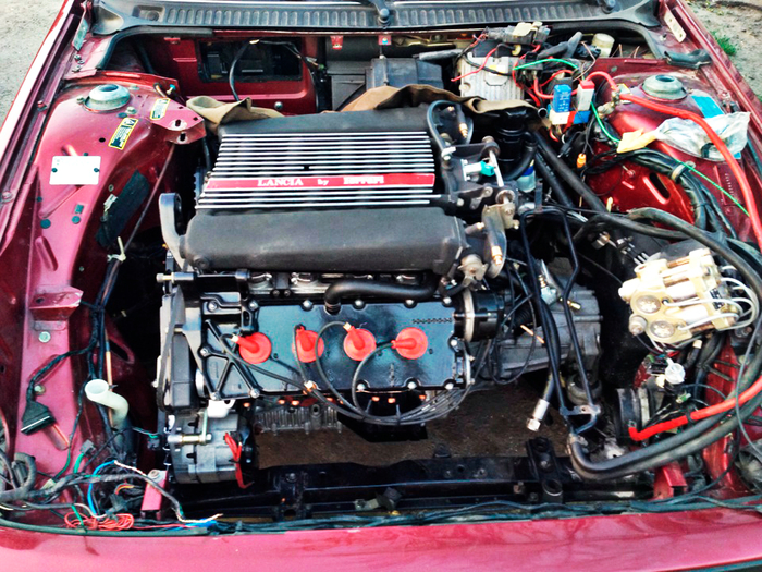 Задача: засунуть этот мотор в Lancia Thema. Переднеприводной седан с поперечно расположенным двигателем.