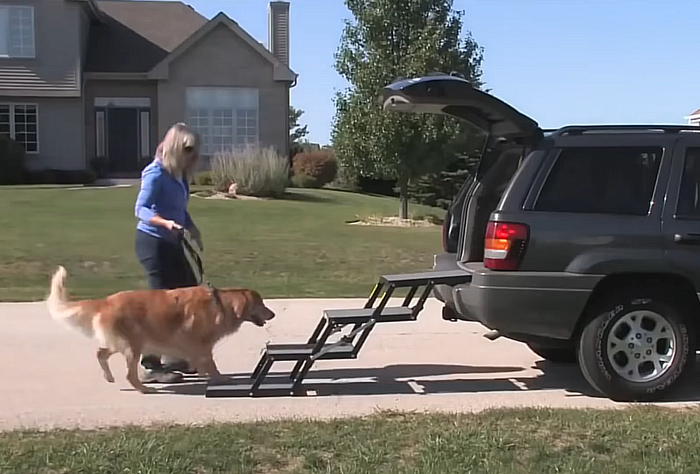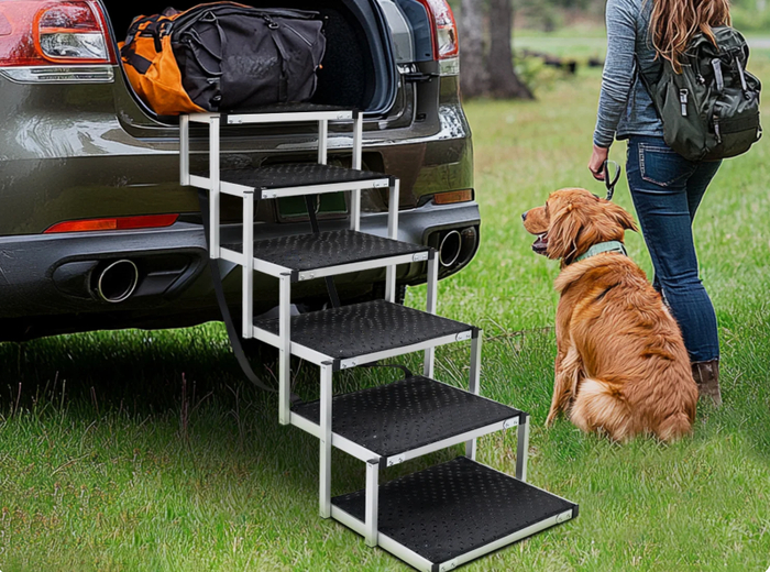 Складная лестница станет незаменимым помощником для владельцев крупных или пожилых собак. Конструкция облегчает процесс посадки животного в автомобиль, избавляя его от необходимости прыгать и рисковать суставами.