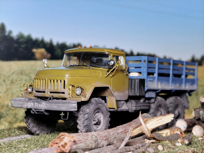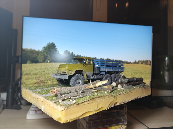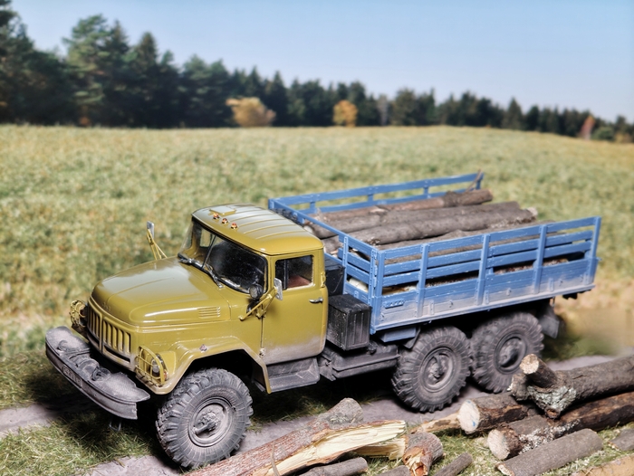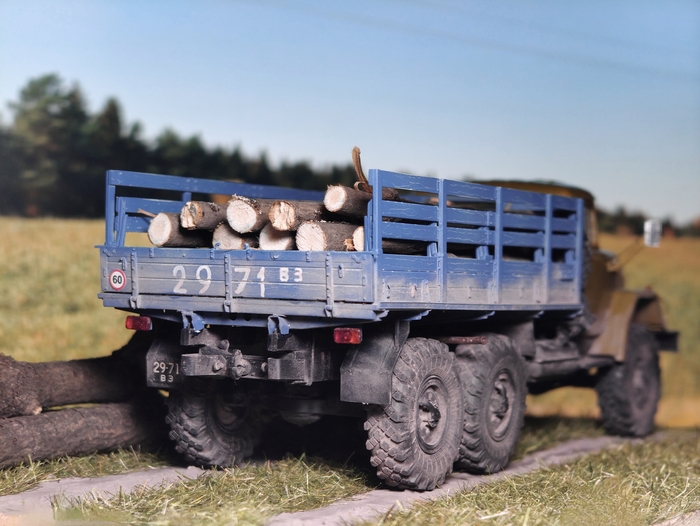 Т.к. грузовик перевозит бревна, в кузове должны быть опилки. Их я приклеил на ПВА