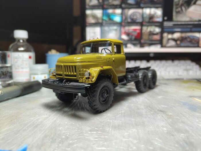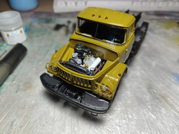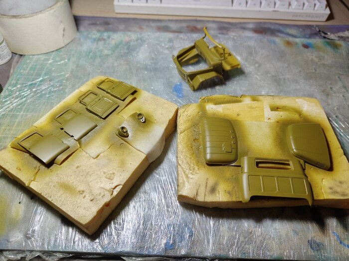 Далее кабина. Ее не стал красить в типичный цвет военных автомобилей, как это делает большинство. Я покрасил ее в цвет хаки. Краска также от MR Hobby