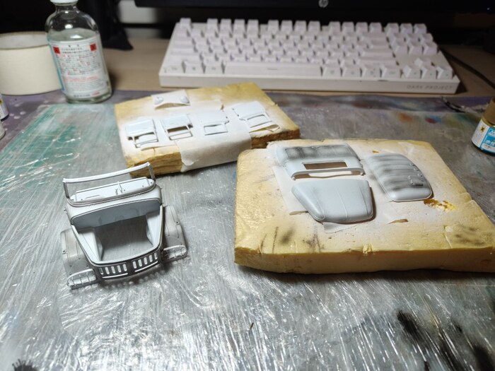 Переходим к кузову. Сперва я покрасил его в 1 слой краской телесного цвета. Далее поймете почему