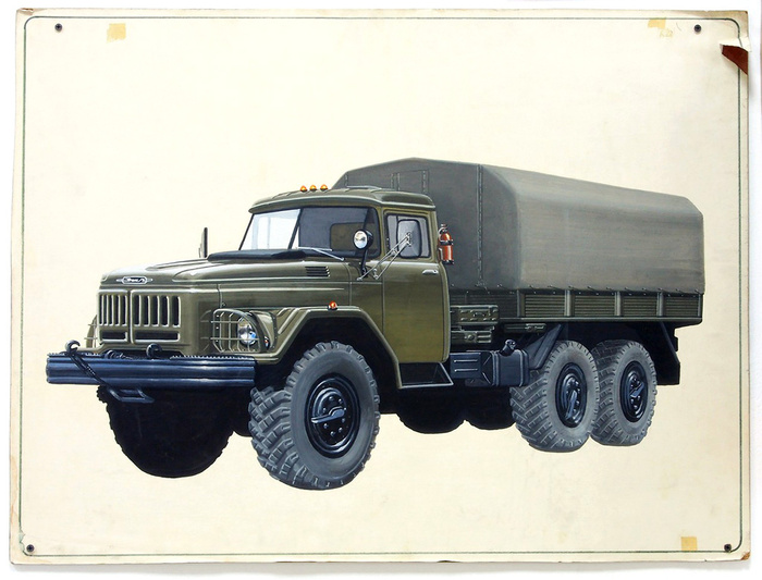 Опытный образец ЗиЛ-131М (1983 г.) с дизелем и плоскими стеклами на рисунке Александра Александровича Краснова (автора облика ЗиЛ-4331). Когда в 1968 году военные вновь вспомнили о плоских стеклах, завод спроектировал такой вариант кабины, но внедрение потребовало бы 543 000 рублей и 250 кв. м дополнительной площади по состоянию на 1970 год и 1 550 000 руб. и 700 кв. м площади — по состоянию на 1982 год.