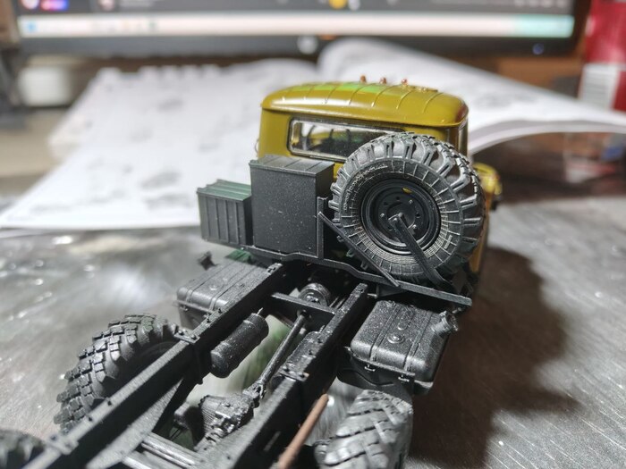 Далее приклеил кузов к раме и нанес пигмент цвета земли