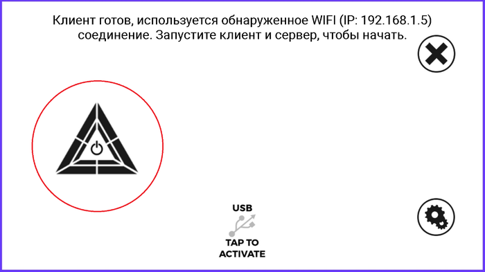 6. Запускаем клиентскую часть на смартфоне нажатием на кнопку слева
