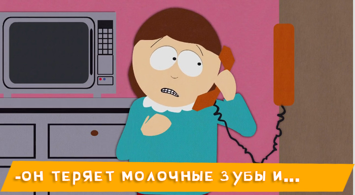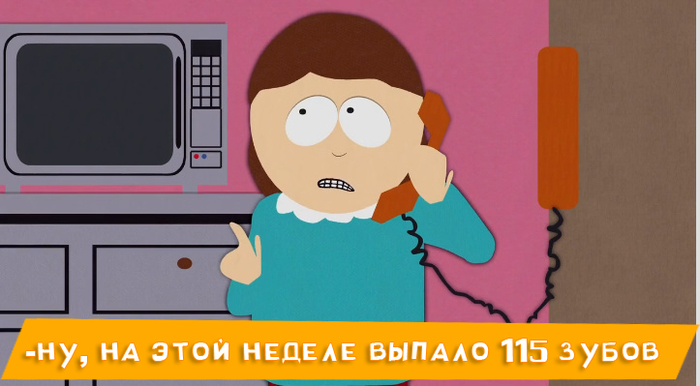 За каждый выпавший зуб родители дают 2 бакса, сиськоклёвая идея: дети собирают зубы, отдают Картману, он сдаёт их "фее" за что получает 2 бакса.