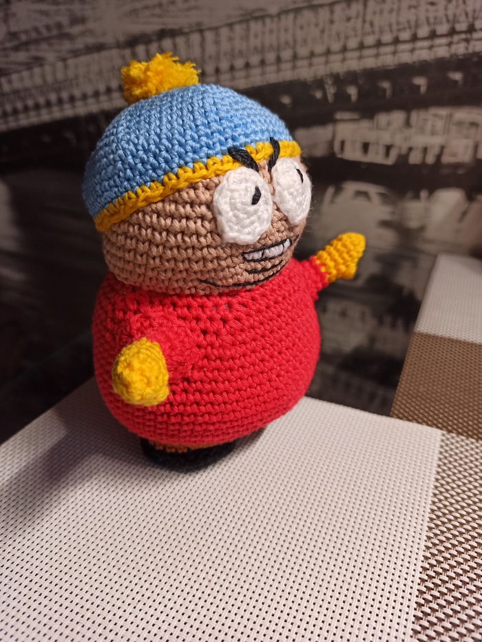 Вот такой получился вязаный Эрик ростом 13 см. Пряжа хлопок 100%. Крючок 2,5.