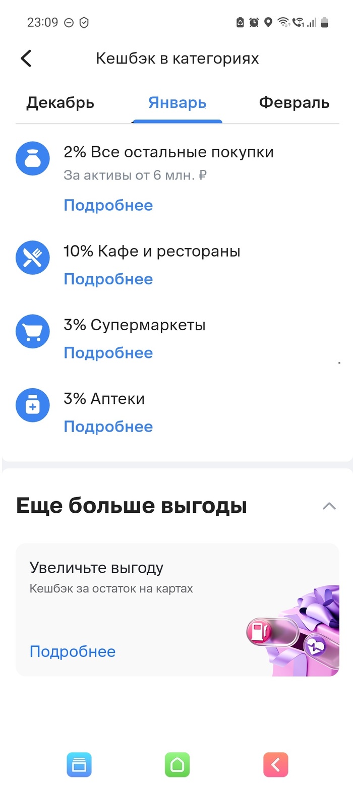 предлагает нищенские 0,5 процента на все покупки и до 5% на различные категории. При этом (без платных подписок) можно выбрать всего три категории. К примеру: