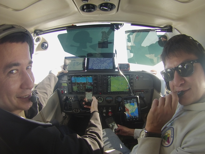 Боря посадил меня слева, так как справа я на 172й цессне почему-то ни разу к тому моменту самолет не сажал. Всё обучение в штатах (да и у нас) всегда проходит с левого кресла. Кажется, что разница небольшая, но она есть. Для меня, почему-то она особенно явная именно на малышах.