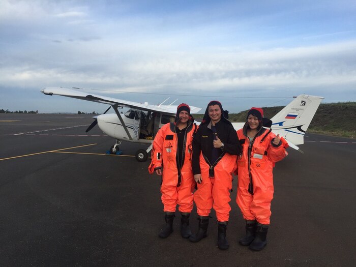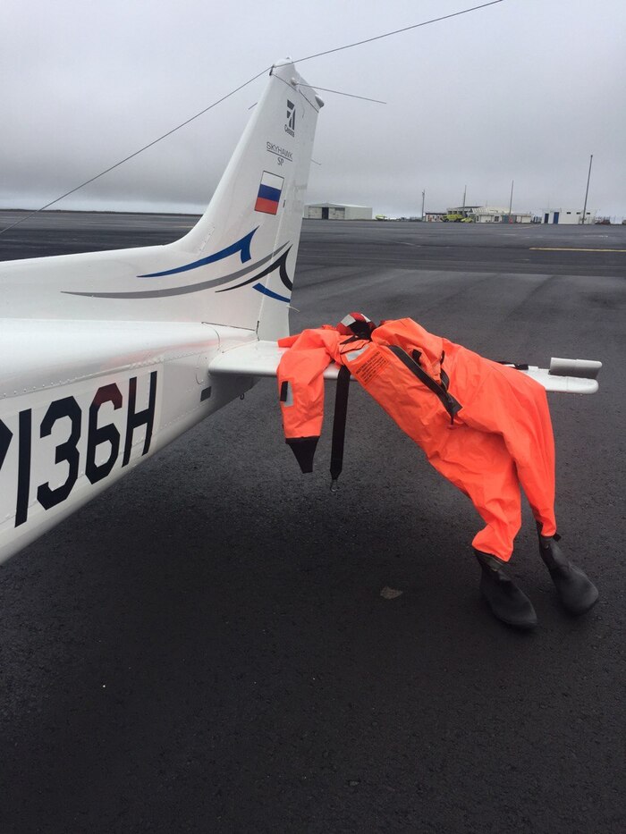 Вернемся к полету. Рано утром 4го нарядившись в оранжевые костюмы мы залезли в самолеты. Сидеть в этих костюмах жутко неудобно, жарко и очень тесно. Запросили разрешения у диспетчера, которая, дав нам разрешение, решила еще раз проверить нашу КВ станцию.. и.. она отказалась работать. Просто помехи и всё. Диспетчер сказала, что без связи нас не пустит. Потом оказалось, что мы дураки, всё работает, но когда вчера тестировали, нажали там что-то, уже не помню, в чем конкретно был косяк. Но факт остается фактом - без КВ станции через океан не пускали, по крайней мере тогда.