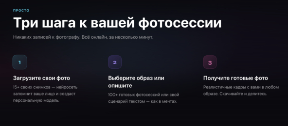 💻 Мультиплатформенность: Это и удобное нейрофото приложение, и сайт. Вам доступна фотосессия с нейросетью онлайн с любого устройства.