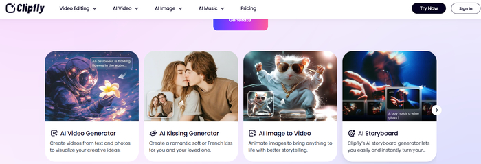 Clipfly - это онлайн-сервис, который специализируется на превращении статичных фотографий в динамичные синемаграфы с помощью выборочной анимации. Он позволяет "задвигать облака", "пускать ветер" или "оживлять воду", сохраняя при этом основной объект неподвижным. Сервис интуитивно понятен, работает прямо в браузере, и идеально подходит для создания впечатляющих кадров с частичным движением.