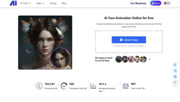 Avatarify Online - это простой и быстрый сервис для мгновенной анимации лиц прямо в браузере, который не требует регистрации или установки. Он позволяет человеку на фото двигать головой, моргать, улыбаться или говорить, причем движения можно синхронизировать с загруженным аудио или голосом. Это отличный инструмент для создания веселых аватаров и демонстрации эффекта "говорящей фотографии".