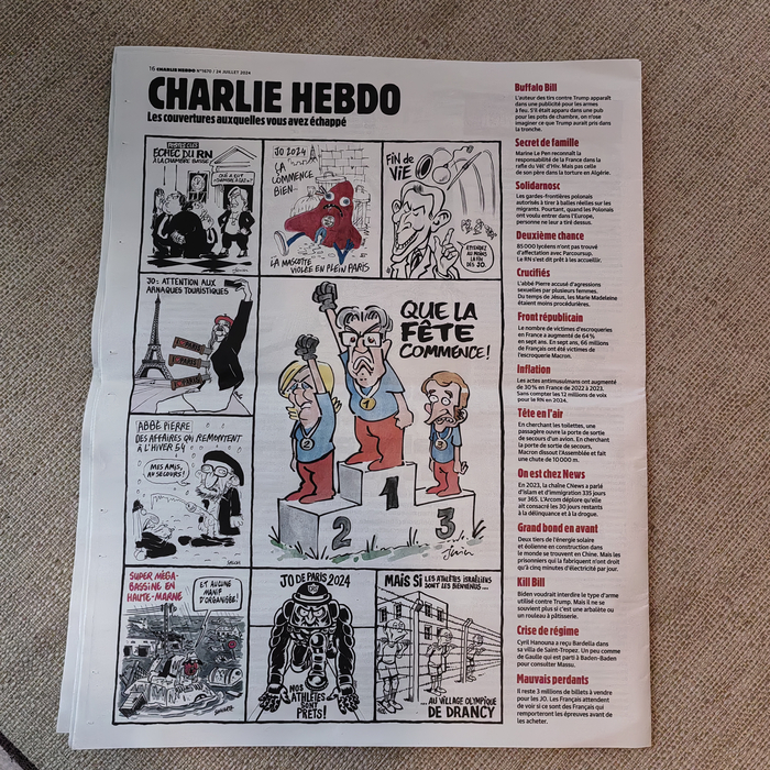 Выпуск Charlie Hebdo от 24 июля этого года - "последние Олимпийские игры перед гражданской войной"