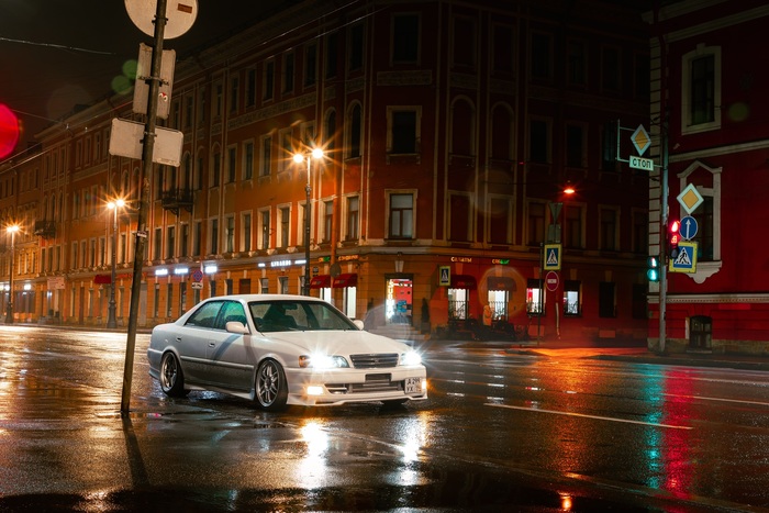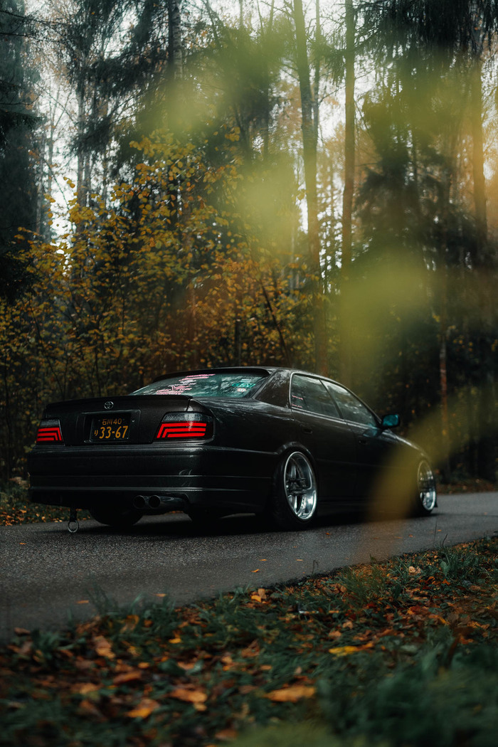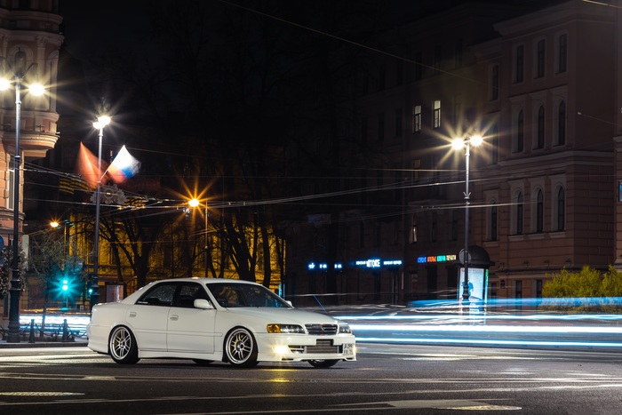 Владея Чайзером с 2015 года, в поиске своего стиля, было произведено много доработок и переделок, был пройден путь от массивных обвесов до минималистичной гармонии. Машина ездит в таком низком положении ежедневно: на работу, за продуктами и просто по вечерней Москве. Путешествия так же проходят на ура. Два года поездок в Сочи и обратно, или в Санкт-Петербург на Tsunami Picnic.