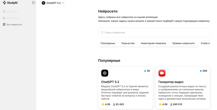 Универсальные нейросети часто становятся первым инструментом, к которому обращаются студенты при работе с учебными задачами. ChatGPT, GigaChat и YandexGPT используются для генерации и редактирования текстов, разбора сложных тем, помощи с кодом и объяснения теории. В этом формате онлайн помощь студентам строится максимально широко — от гуманитарных предметов до технических и прикладных направлений.