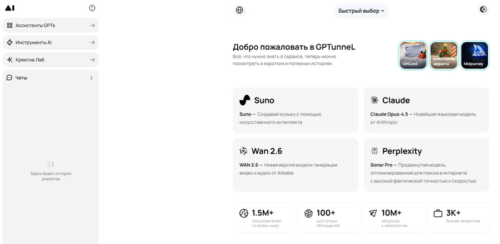GPTunneL — удобно сравнивать продолжения от разных моделей и выбирать самый удачный вариант под ваш текст.