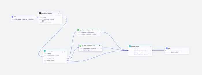 Так выглядит небольшая автоматизация в конструкторе агентов. Очень мощная штука, можно загрузить свои данные в базу, потом интегрировать куда угодно, как ассистента или помощника.