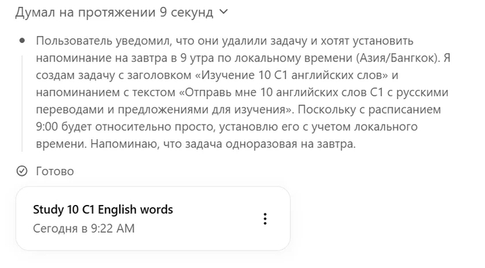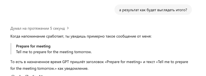 Если GPT не распознает напоминание, то можно использовать в начале запроса слова «Поставь себе напоминание», работает почти 100%