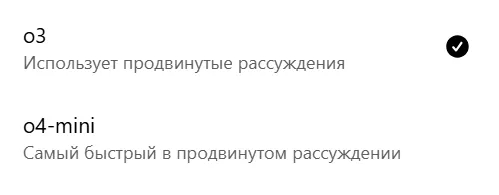 1️⃣ На платной версии выбери модель o3 и o4-mini