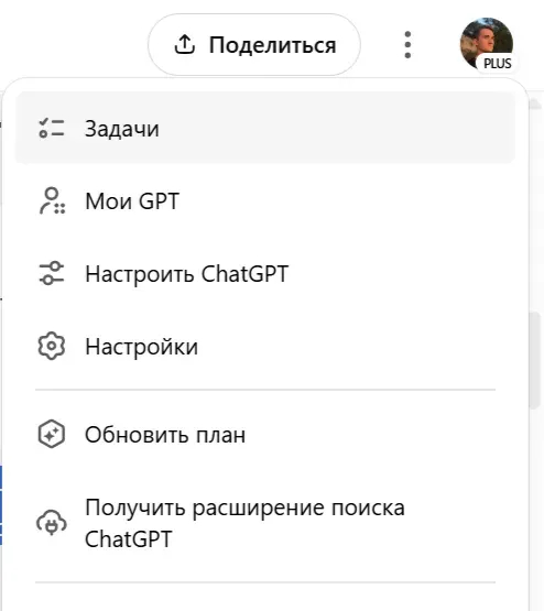 Если у вас уже есть задачи, как у меня, то кнопка “Создать задачу” почему-то отсутствует. И создать можно только через чат с включенной о3 или о4-mini моделью