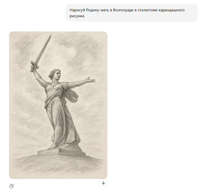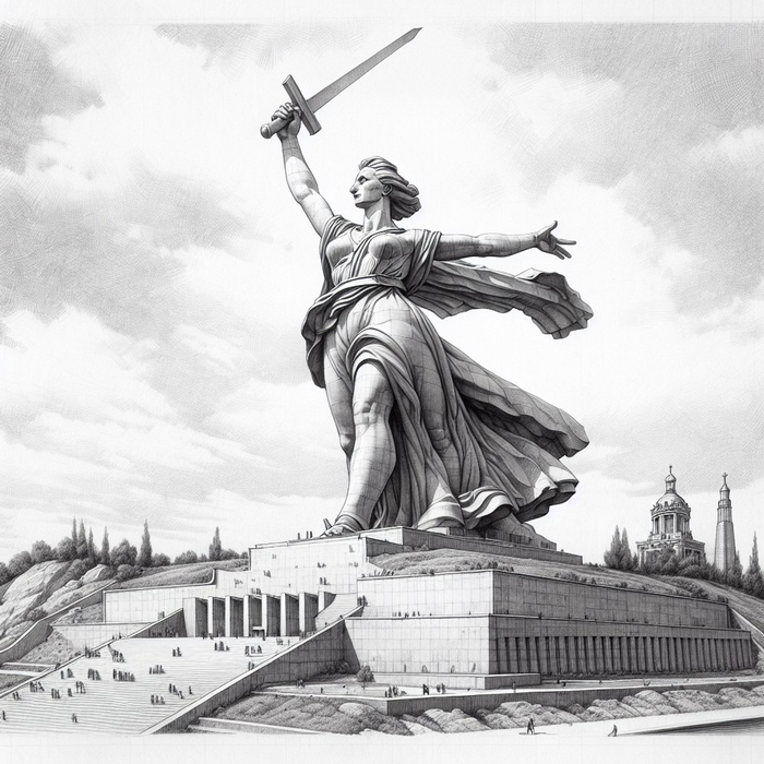 The Motherland Calls in Volgograd in the style of a pencil drawing (автоперевод)