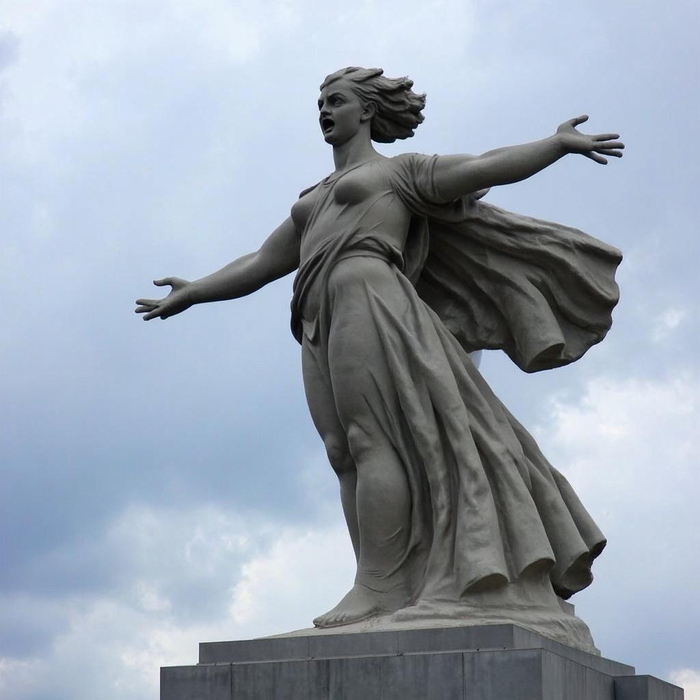 Сильно «в пересказе», но значительно лучше шедевра Шедеврума. Этакий гибрид между реальной Родиной-матерью и Статуей свободы.
