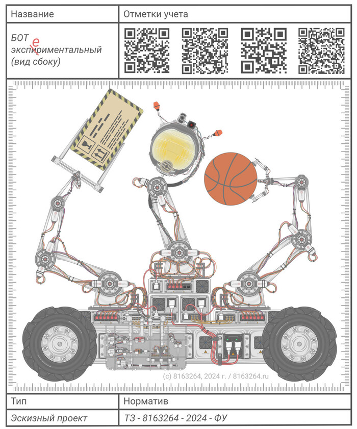 Тогда, не откладывая, представляю своего главного героя полными титулами. Знакомьтесь: Бот - электронно-механическая сущность с Искуственным Интеллектом (ИИ) состоящим из Большой Языковой Модели (БЯМ), Пространственной Ассоциативной Модели (ПАМ) и Нейросетевой Аморфной Компоненты (НАК) и все это интеллектуальное безобразие до кучи воодружено на Механическую Платформу (МП).