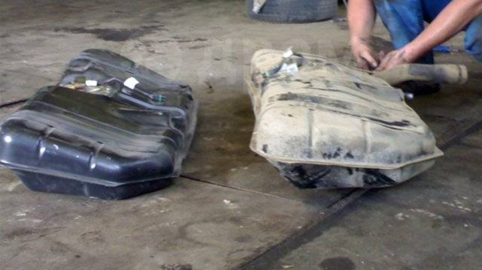 Таким образом, оставшееся в адсорбере топливо попадает в двигатель, где сгорает. Более того, разряжение, созданное двигателем, к которому подключён адсорбер, передаётся и в сам топливный бак. Тем самым в бензобаке всегда поддерживается небольшое разряжение, значение которого ограничивается впускным предохранительным клапаном. Это наружу топливная система не может сообщаться с атмосферой, а внутрь — можно. Такой клапан нужен для того, чтобы бак не скукожило внутрь при сильном разряжении, которое возникнет в нём при работе двигателя (если клапан продувки адсорбера вдруг заклинил в открытом состоянии), а так же при остывании. Вот что бывает, когда предохранительный клапан выходит из строя.