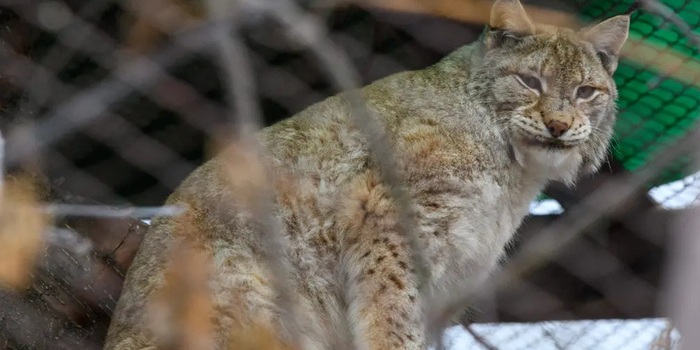 Вероятно, рысь хотела погреться и забралась на трубу теплотрассы.