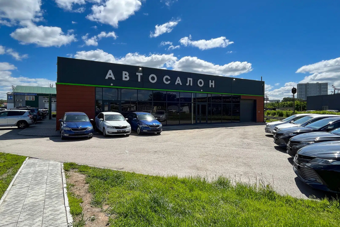 Дорога заняла больше часа — салон находился где-то на задворках промзоны. Первый тревожный звоночек: никаких фирменных знаков Chery на здании, только растяжка "Автосалон" и "Азимут Авто" и список брендов, среди которых затесались даже те, что официально в России не представлены. Но я решил идти до конца — уж больно интересно было посмотреть на весь процесс изнутри.