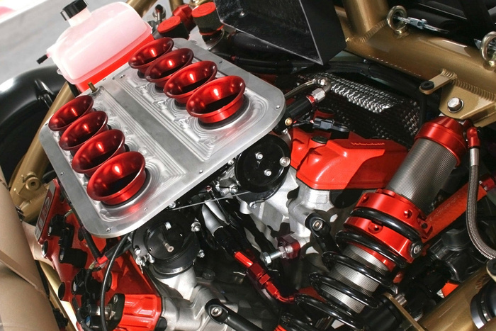 Первая строчка и такая интрига! Знаем, реальность не соответствует ожиданиям, поскольку в лидеры рейтинга выбился не суперавтомобиль всемирно известного бренда, а симбиоз «формулы» и мотоцикла Ducati от карликовой британской фирмы. Двухколесные ассоциации вызывает силовая структура в духе рамы типа «птичья клетка» и предельные (точнее, запредельные) обороты трехлитровой «восьмерки» от конторы Hartley Enterprises из Милуоки, штат Висконсин. Кстати, соседи Harley-Davidson!