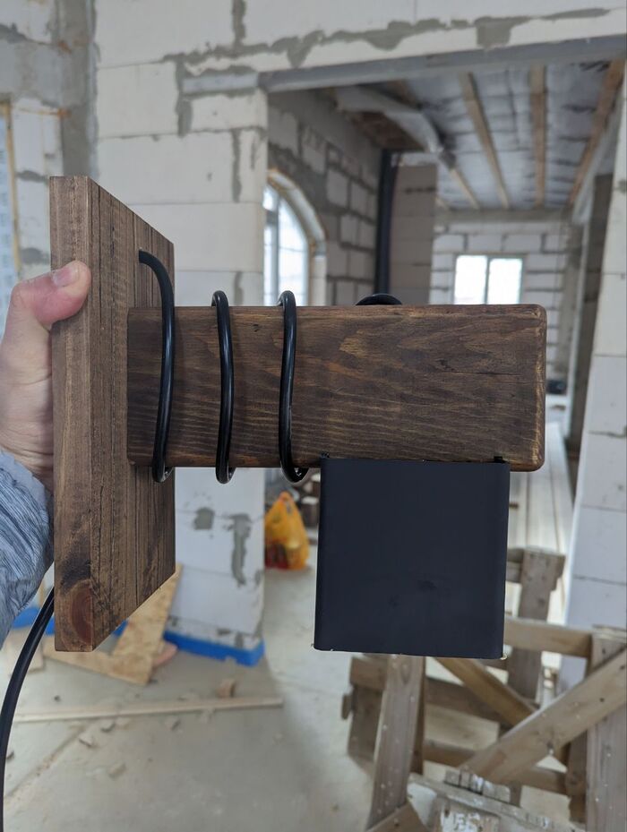 Обрезки дерева от предыдущего заказа, провод от старого советского пылесоса, плафон профиль 100*100*3мм.