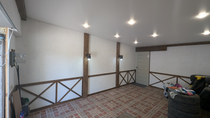 Дальше финишная отделка. Тут надо понимать что гараж зона повышенного риска с высокой влажностью и плохой вентиляцией. Плюс он не отапливается на постоянной основе. Есть вероятность протечки крыши. Все это необходимо предусмотреть заранее.