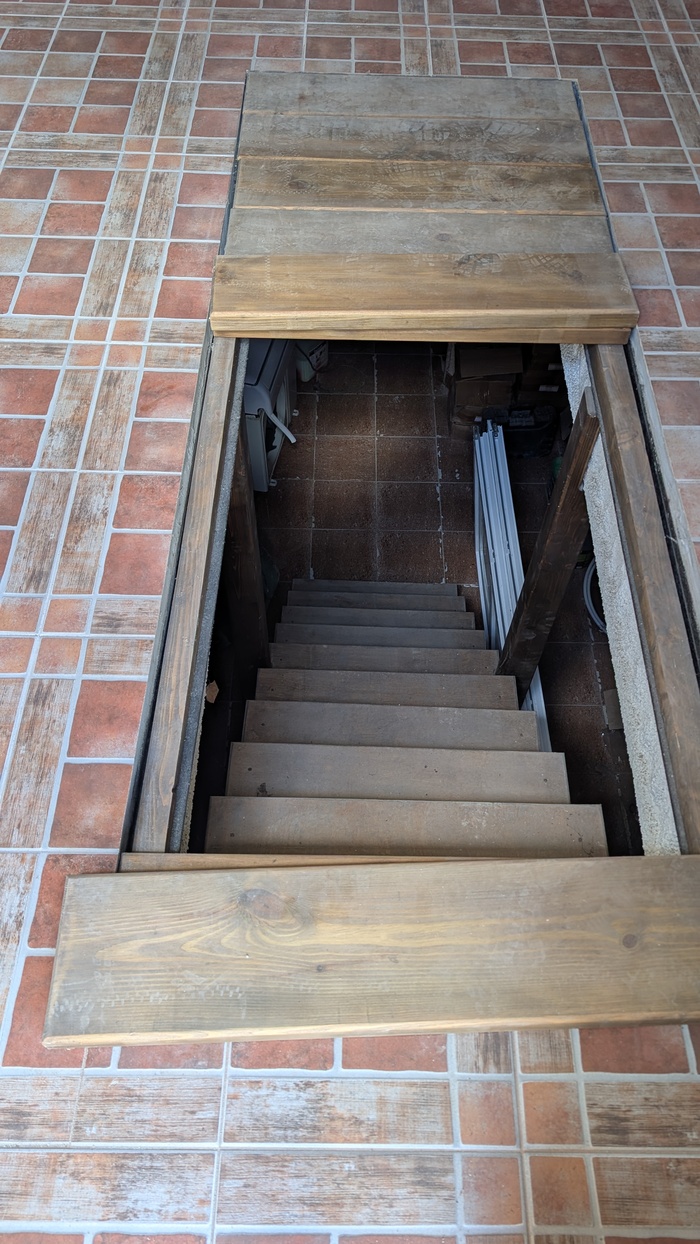 Под гаражном подвал на 2 комнаты. Одна оборудована стеллажами для бытового хлама. Во второй установлен бойлер, ёмкость для воды, насос.