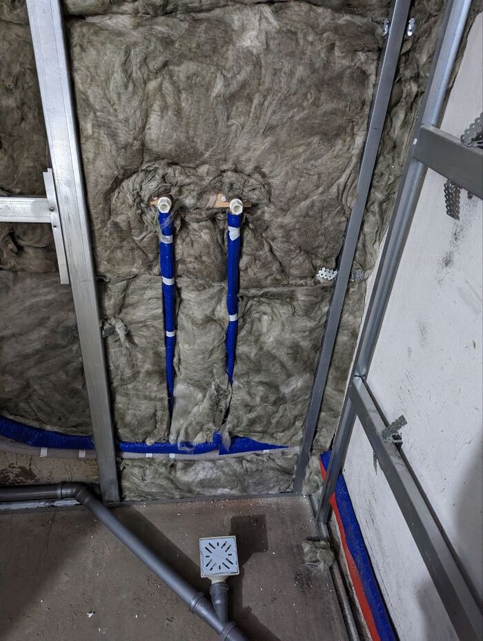 На стенах использовал ОСБ. Пол плиточный, потолок натяжной. В комнате отдыха рискнул постелить ламинат. В качестве основного источника тепла сделал полы с плёночным подогревом.
