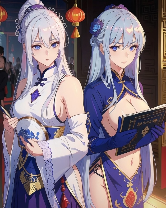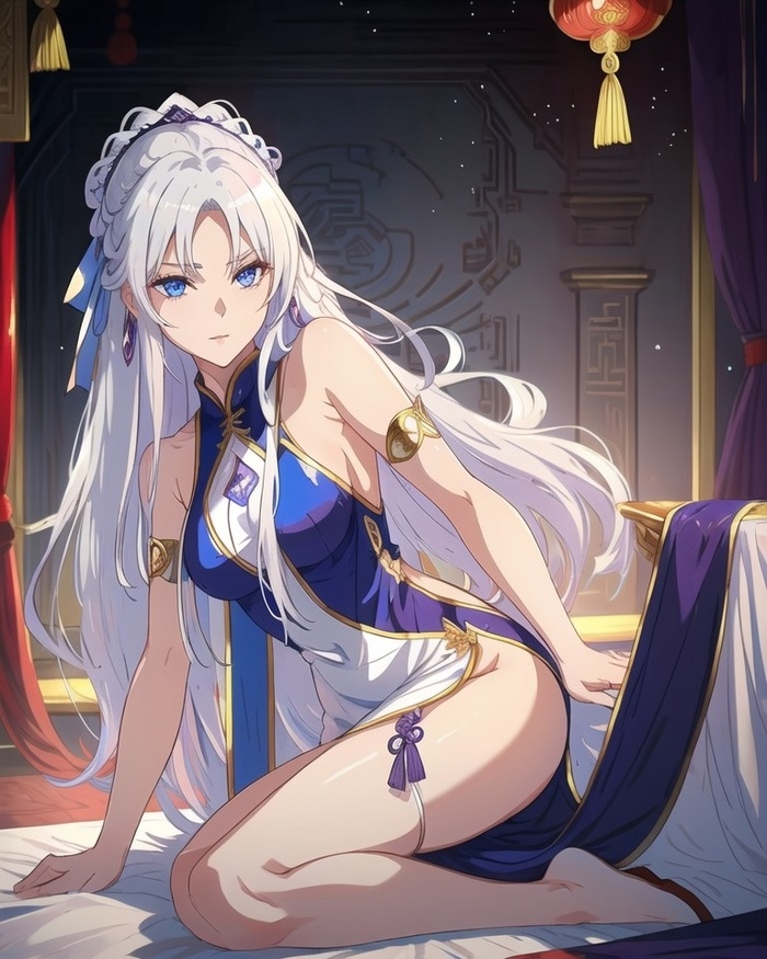 Это я пыталась нарисовать, как выглядела гг из 5 тома книги "Безмятежный лотос". В запросе написала про короткое платье в китайском стиле, но ИИ решил, что под платьем точно ничего не должно быть :)