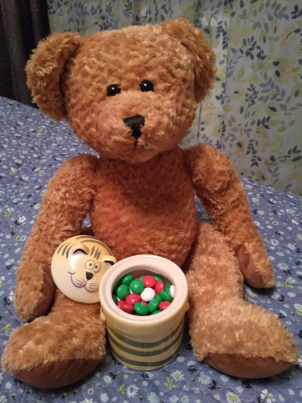 Чудесный мягкий мишка и очень милая и полезная баночка полная вкусных конфет