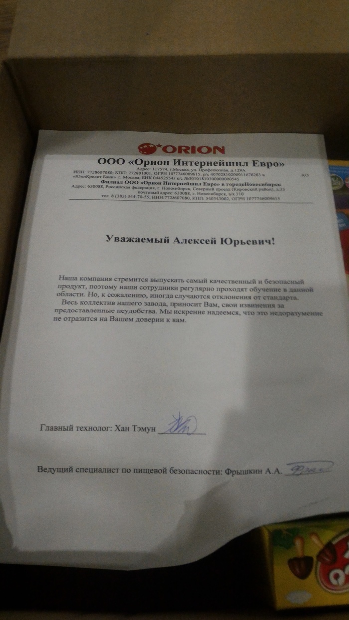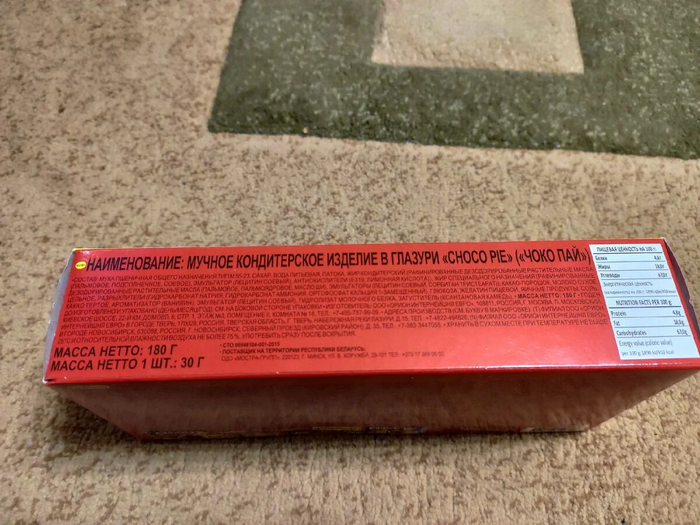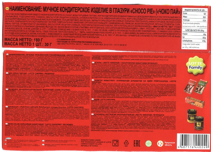 Как итог: На вкус Чокопай Lotte хорошая замена Orion, особенно, учитывая разницу в цене в 20 бачей. Без сравнения, вы вряд ли почуете разницу. Однако... Кроется ли дьявол в мелочах? А в нашем случае, в составе?