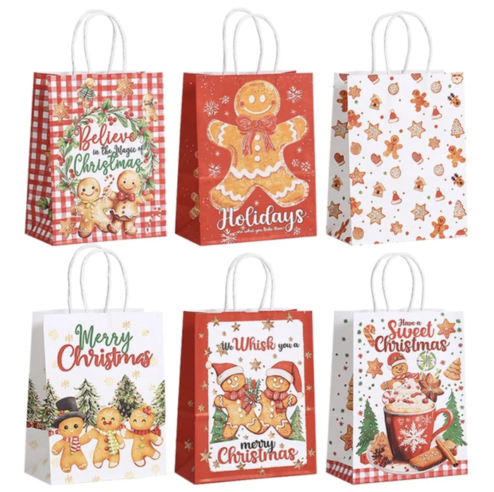 Плотная бумага выдерживает подарки разного веса, а сезонные рисунки создают праздничное настроение. Пакеты подходят для упаковки сладостей, сувениров и небольших наборов.