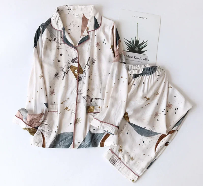 Мягкая вискоза комфортно прилегает к телу и обеспечивает приятный микроклимат во время сна. Ткань дышит, не раздражает кожу и красиво струится.