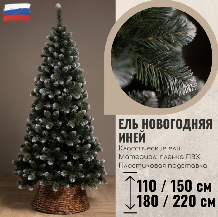 Пушистая хвоя с эффектом снежного налёта создаёт ощущение зимнего леса даже в обычной комнате. Ветви держат форму и выдерживают объёмные игрушки, а плотный PVC сохраняет внешний вид многие сезоны.