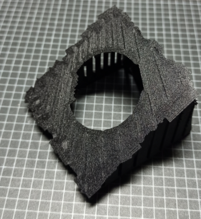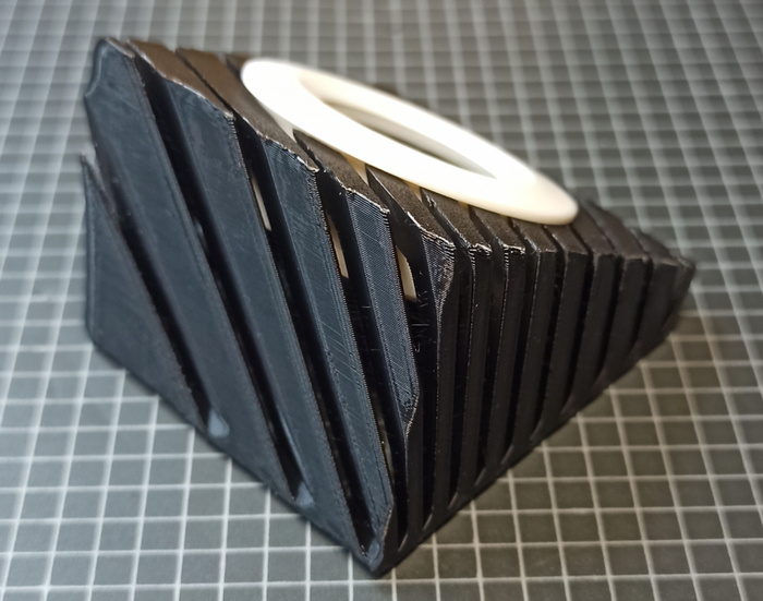 Попробуем это напечатать. Загоняю в слайсер и удивляюсь вместе с ним. 47К ошибок!... Рекордное... Фиксим, чиним, прикидываем, пристраиваем и получаем такой вот вариант. 3 часа 37 минут, 18 метров лески, 7.29 грамма...