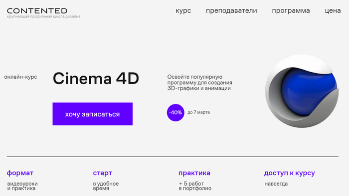 Cinema 4D от Contented.ru — идеальная обучающая программа по созданию графики для рекламы и телевидения.